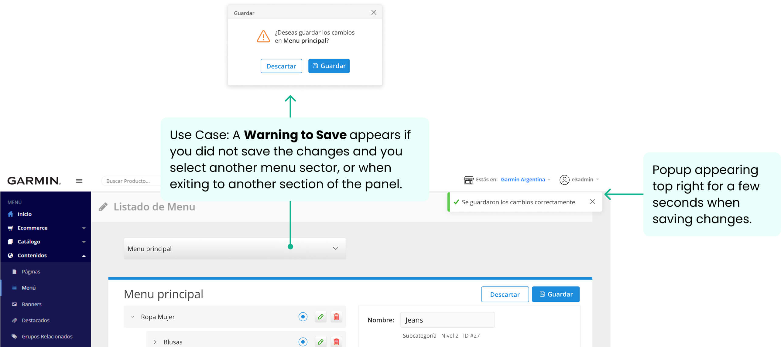 In the old version, when editing a menu and switching the main selector to another menu, all changes were lost without any warning or prompt to save.