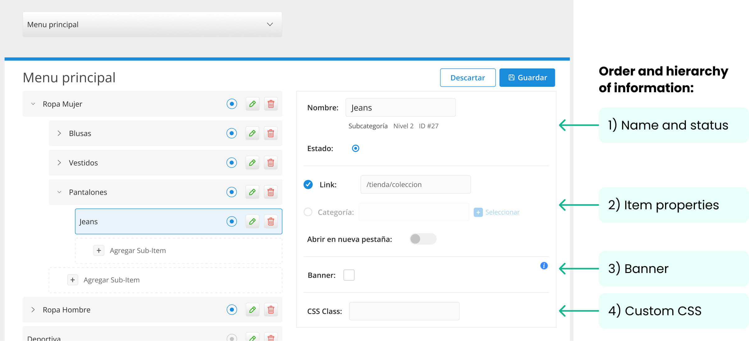 The result was a completely reimagined Menu Builder that gives users full control over their store navigation, with a focus on simplicity and flexibility:
